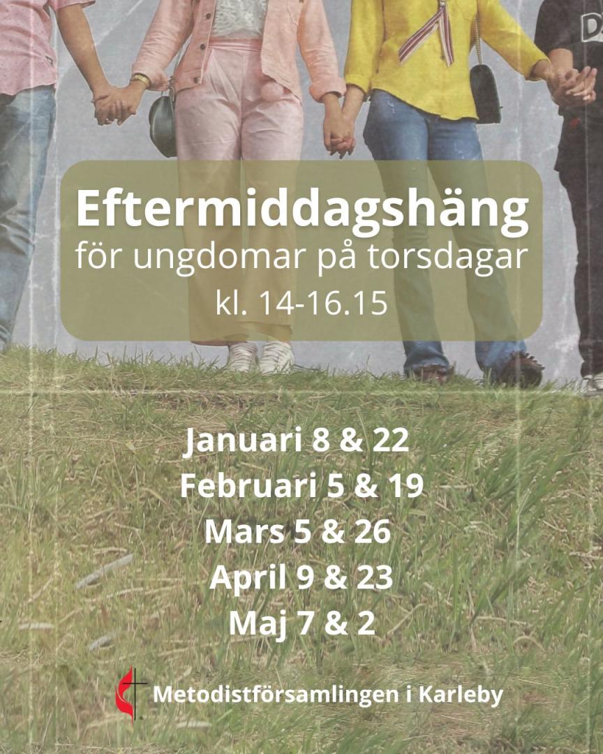 Eftermiddagshäng kl 14-16:15 ett par torsdagar i månaden.